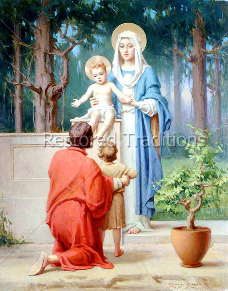 This beautiful artwork by Chambers shows Our Lord and Saint Joseph with the children, Christ and John the Baptist.
