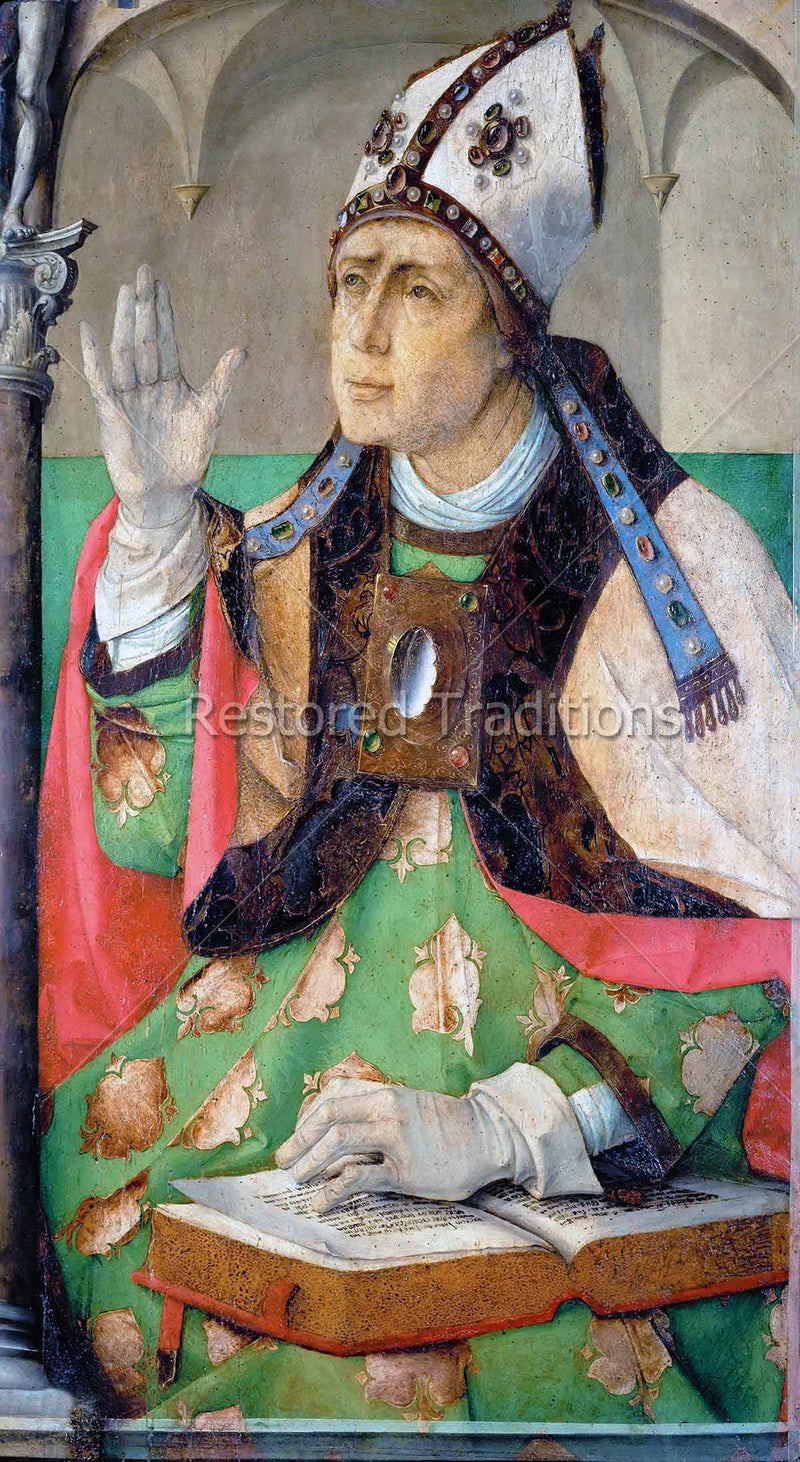 Saint Augustine of Hippo, the son of Saint Monica, was an early Christian theologian and doctor of the Church. He famously wrote The City of God and Confessions. Artwork by J. Wassenhove.