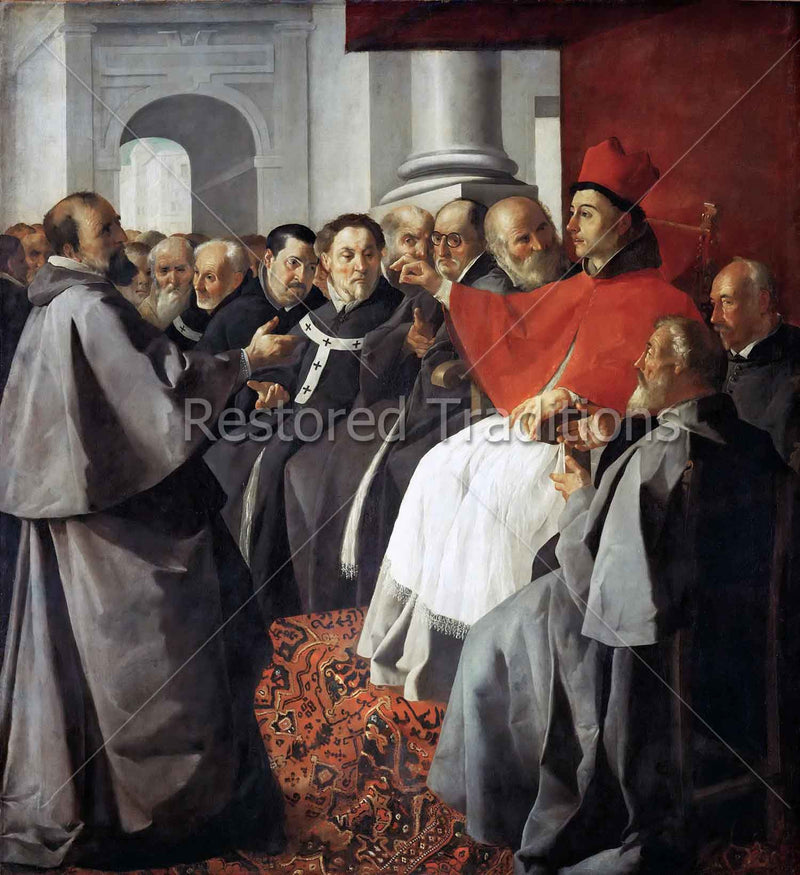 This artwork by F. Zurbaran shows Saint Bonaventure, thirteenth-century bishop and Seraphic Doctor of the Church, assisting at the Second Council of Lyon.